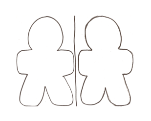 Copy the gingerbread boy shape onto several manila files and cut out. Let the children trace around them and cut them out. Let them color them if they choose to. Ask the children to pretend that the cookie becomes a real person, what would you name it, and what might you say to it? Write their responses on the back.
