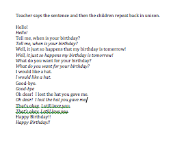 Second time, go back through the story and this time read the pictures with the children. On each page let the children talk about what they see. (What kind of animal is Mary? Where is she? What is she doing? Why is she walking across that log? What is on her head? What do you think is inside the box?) Allow plenty of time for the children to discuss and share their party experiences with one another.