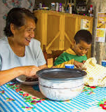 Bring the large basket filled with the items listed. Tell the children that you have a surprise for my Tia/aunt whom I love very much. Ask them if they can guess why you are giving them to your Tia. “Yes! It’s her birthday!” If nobody suggests birthday, tell the children because it is her birthday. Pick up each item and have the children name. Ask the children how they celebrate birthdays. Write their responses on a large sheet of paper.