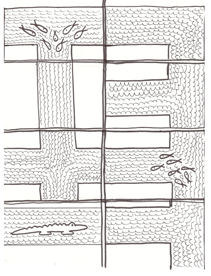 Note all the important and interesting things that happen along the water’s edge as you read. On the page that starts with “Still it rained”, stop and ask the children if they can see what is happening t the water?(Point out how the water continuously moves and grows larger). When the lake takes over the farmers meadow, ask the children what they think is going to happen?