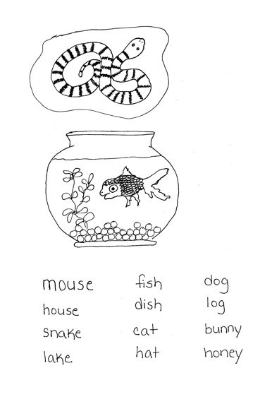 Copy and cut out the pictures of the animals. Show one at a time to the child and ask them where is the animal? Or ask, what animal is under the hat? Encourage the children to name the animal and a word that rhymes with it.