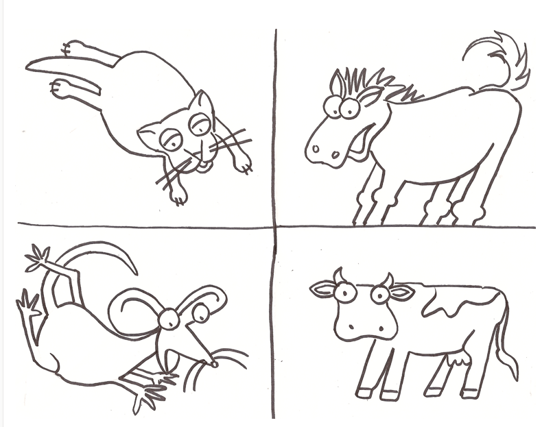 Ask the children if they can remember why the mouse squeaked at the beginning of the story? Can they recall the order of the animals?