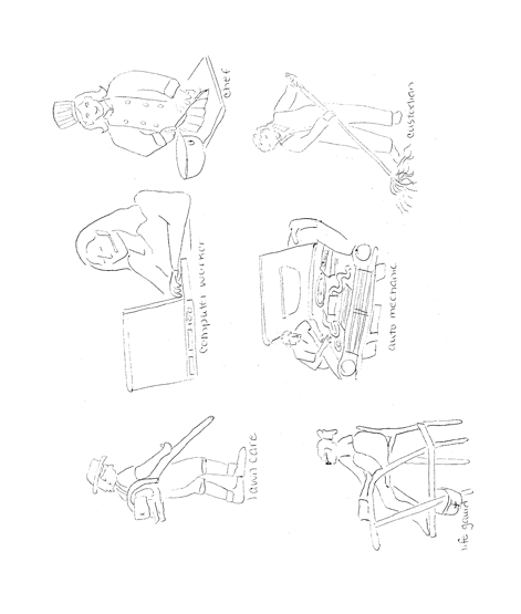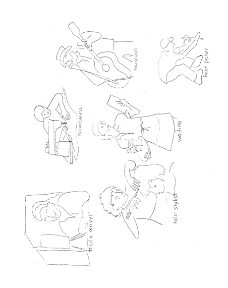 Ask the children if they know what kinds of work their parents do for a living? Write down their responses. Explain that parents do many different kinds of jobs. Talk about your job as a teacher and other jobs within your center. Ask the children if they know why adults need to get jobs (to make money, so we can buy the food, cause they have to work).