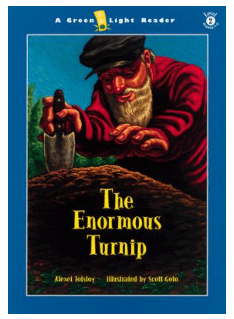 In this story a farmer plants a turnip and asks it to grow sweet and strong. The turnip does grow, and grow, and grow into an enormous turnip! It takes the farmer the help of his family and friends to get the turnip out of the ground.
