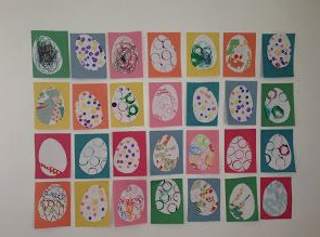 Creative Arts/Art; develops growing ability to plan, work independently, and demonstrate care and persistence in a variety of art projects.