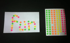 - 15 index cards cut in half the long way. On 20 of the halves, make a small circle of color using a crayon or marker. On the remainder 10, make a bean shape with arms and legs (jumping beans)