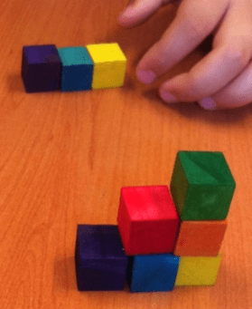 Mathematics/Patterns & Measurement; shows increasing abilities to match, sort, put in series, and regroup objects according to one or two attributes such as size or shape.