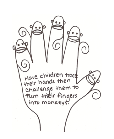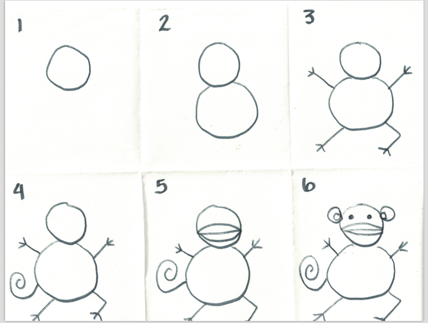 Show the children the How to Draw a Monkey page. Encourage them to try to follow the steps and make five monkeys.
