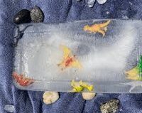 Put the animals in the frozen ice blocks into the table. Ask the children to see if they can get the animals out. (warm water with spoons works as does using blocks for a hammer effect)