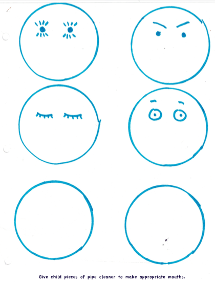 - Cut out many circles of green, red, and/or purple. Encourage the children to draw different emotions on each (smiley face, angry face, sad). Hang them on the wall as like bunches of grapes and label it A Bunch of Feelings.
