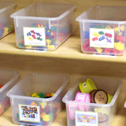 - Add labels to your shelves so the children can ‘read’ where to put things away.