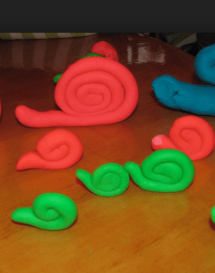 - Encourage the children to make snakes by rolling out the play dough. Ask if they can make a longer one, shorter one, or one the same size.