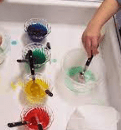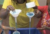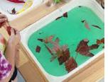 By adding extra elements to the table such as damp sand or cornstarch and water, you are encouraging the children to observe, predict, and describe what is happening. The National Science Education Standards call for science to be taught through inquiry. Inquiry means hands on and active involvement. Use your table to teach float-sink, mixing of solutions, how to make secondary colors from primary colors, liquids and solids and melting, absorption, and textures. By adding natural materials the children can sort and organize the materials in their own ways while gathering information about the natural world. Because each child is control about how they use the materials you can talk to them about problem-solving, observations, and making hypothesis.