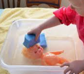 Children are drawn to water and sand play. Through water and sand play children are gathering information on how to manipulate materials within the confines of the table. As children become familiar with sand and water play, you can watch the play become more intentional about what they are doing. Children are often drawn to water play and if you do not provide a space, you will often see them playing in the sink washing their hands for extended periods of time. That’s because water and slippery soap feel good. And the sound of moving water has been proven to help people relax and to calm down. If you have an upset child, encourage them to move towards your water/sand play. Water play soothes and relieves tensions in a safe and harmless way.