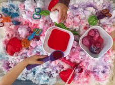 Your sensory table does not have to be big, small dishpans placed on a table will work. I know many teachers feel that the sand and water table is too messy for indoor play. Your classroom is for children, it’s ok to be a little messy. You can teach your children cleanup skills by providing smaller brooms and mops. Old beach towels work well for protecting the floor. And remember to take advantage of your sandbox outside also. According to early childhood experts, sand and/or water should be available for at least 2 hours per day. But with simple modification, the sensory table can be available at all times.